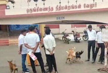 வேலூர் ஒருங்கிணைந்த நீதிமன்ற வளாகம் ஏ-பிளாக் கட்டட பகுதியில் நாய்களின் தொல்லை:பீதி அடையும் பொதுமக்கள்!