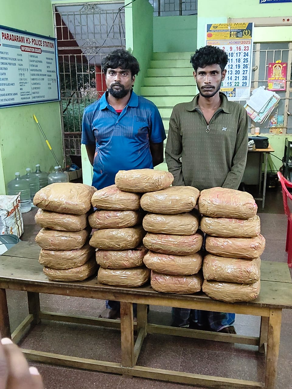 வேலூர் மாவட்டத்தில் சட்டவிரோதமாக கஞ்சா விற்பவர்கள் மற்றும் கடத்துபவர்களை தடுக்க மாவட்ட காவல்துறை பல்வேறு நடவடிக்கைகளை மேற்கொண்டு வருகிறது. இந்நிலையில் வேலூர் சரக காவல்துறை துணைத் தலைவர் முனைவர் ஜி. தர்மராஜன் மற்றும் வேலூர் மாவட்ட காவல் கண்காணிப்பாளர் மயில்வாகனன் உத்தரவின் படி, போலீசார் தீவிர கண்காணிப்பில் ஈடுபட்டு வந்தனர். இந்நிலையில் வேலூர் மாவட்ட காவல் கண்காணிப்பாளருக்கு கிடைத்த ரகசிய தகவலின் அடிப்படையில், வேலூர் மாவட்டம், பரதராமி காவல் நிலைய எல்லைக்கு உட்பட்ட பரதராமி சோதனைச் சாவடியில் மாவட்ட தனிப்படை காவல் உதவி ஆய்வாளர் விக்னேஷ் தலைமையிலான போலீசார் வாகன சோதனை மேற்கொண்டனர். அப்போது அந்த வழியாக வந்த 10 சக்கர கனரக வாகனத்தை மடக்கி சோதனை மேற்கொண்டனர். இதில் சட்டவிரோதமாக விற்பனைக்காக ஆந்திராவில் இருந்து கடத்திக் கொண்டு தமிழக பகுதிக்கு கொண்டுவரப்பட்ட சுமார் ரூபாய் 4 லட்சம் மதிப்புள்ள 40 கிலோ கஞ்சாவை பறிமுதல் செய்தனர். இதை தொடர்ந்து கஞ்சாவை கடத்தி வந்த மதுரை சஞ்சீவியின் மகன் பாபு (32), சிவகங்கை முனியாண்டி மகன் ராஜ்குமார்( 25) ஆகிய இருவர் மீதும் வழக்கு பதிவு செய்து அவர்களிடமிருந்து 10 சக்கர கனரக வாகனத்தை பறிமுதல் செய்து 40 கிலோ கஞ்சாவையும் பறிமுதல் செய்து நீதிமன்ற காவலுக்கு கொண்டு சென்று ஆஜர்படுத்தினர். வழக்கை விசாரித்த நீதிபதி இருவரையும் சிறையில் அடைக்க உத்தரவிட்டார். குறிப்பாக இது தொடர்பாக மேற்கொண்டு விசாரணை நடந்து வருகிறது. இது போன்ற சட்டவிரோதமாக கடத்தி வரப்படும் போதைப் பொருள்கள், கஞ்சா ஆகிய கடத்தலில் ஈடுபடுபவர்கள் மீது காவல்துறை கடுமையான நடவடிக்கை மேற்கொண்டு வருகிறது என்றும், இதுபோன்ற குற்ற செயல்களில் யாரும் ஈடுபட வேண்டாம் என்றும், அப்படி மீறி ஈடுபட்டால் அவர்கள் மீது கடுமையான சட்ட நடவடிக்கை மேற்கொள்ளப்படும் என்றும் வேலூர் மாவட்ட காவல் கண்காணிப்பாளர் அலுவலகம் எச்சரித்துள்ளது.