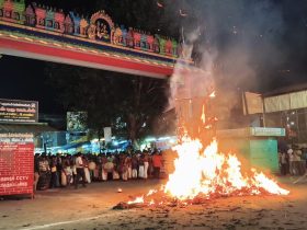 சங்கர நாராயண சாமி கோவிலில் கார்த்திகை தீப திருநாளை முன்னிட்டு சொக்கப்பனை கொளுத்தப்பட்டது