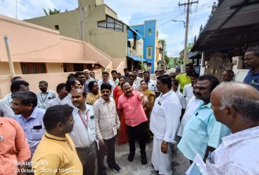 வேலூர் அரியூர் பகுதியில் தேங்கியுள்ள மழை நீரை பார்வையிட்டு ஆய்வு செய்த எம்எல்ஏ நந்தகுமார்!
