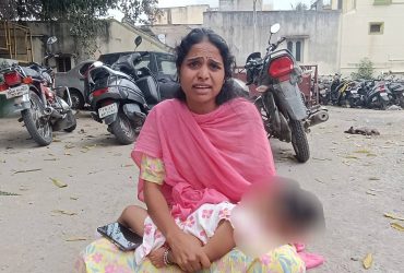 ஜோலார்பேட்டை காவல் நிலையம் முன்பாக குழந்தையுடன் பெண் தர்ணா போராட்டம். கணவனுடன் சேர்த்து வைக்க கோரிக்கை.