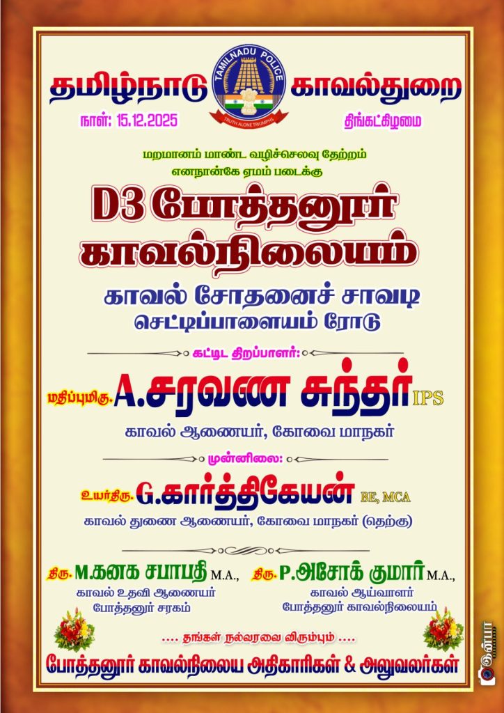 போத்தனூர் காவல் நிலைய அதிகாரிகள் மற்றும் காவல் ஆளிநர்கள்.