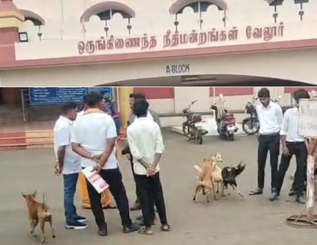 வேலூர் ஒருங்கிணைந்த நீதிமன்ற வளாகம் ஏ-பிளாக் கட்டட பகுதியில் நாய்களின் தொல்லை:பீதி அடையும் பொதுமக்கள்!