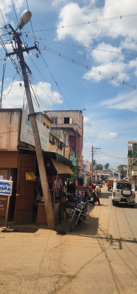 மேட்டுப்பாளையம் காந்தி மைதானத்தில் அதிக மக்கள் புழக்கத்தில் உள்ள பகுதியாகும் இப்பகுதியில் மிகவும் பழுதடைந்த நிலையில் மின்கம்பம் முறிந்து தொங்கிக்கொண்டு உள்ளது ஏதேனும் உயிர் சேதம் ஏற்படும் முன், மின்வாரியத்துறை அதிகாரிகள் நடவடிக்கை எடுப்பார்களா அப்பகுதி மக்கள் எதிர்பார்ப்பு