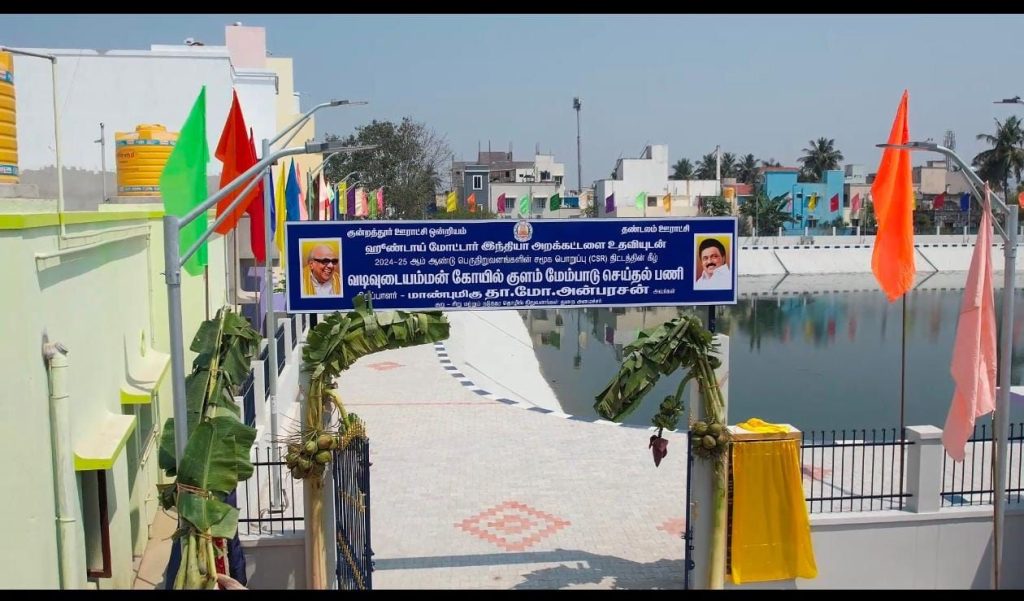 தற்பொழுது ஸ்ரீபெரும்புதூர் அடுத்த குன்றத்தூர் எல்லையில் உள்ள தண்டலம் கிராமத்துக்கு பெரிய குளத்தை சீரமைத்து அழகு படுத்தி உள்ளது. இந்த குளத்து கரையில், நடைபாதை பயிற்சி களமும் அமைக்கப்பட்டுள்ளன. இதன் மூலம் 1000க்கும் மேற்பட்ட மக்கள் பயனடைந்துள்ளன.