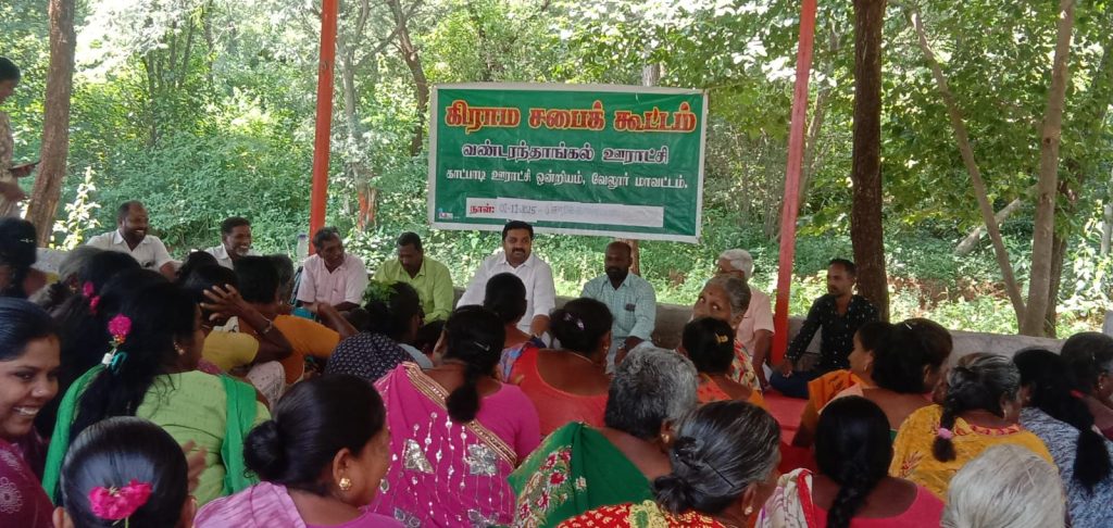 வேலூர் மாவட்டம், காட்பாடி வட்டம், வண்டறந்தாங்கல் ஊராட்சி, சொரக்கால்பட்டு வஜ்ரவேல் முருகன் கோயில் மலை அடிவார பகுதியில் உள்ளாட்சி தினத்தை முன்னிட்டு கிராம சபை கூட்டம் நடந்தது. ஊராட்சி மன்ற தலைவர் பி.ராகேஷ் தலைமை வகித்தார். ஊராட்சி செயலர் இ. சுரேஷ் வரவேற்று அறிக்கை வாசித்தார். துணை தலைவர் முத்துலட்சுமி குமார், ஒன்றிய குழு உறுப்பினர் வி. சாந்தி வீராசாமி, ஊராட்சி வார்டு உறுப்பினர் இ. அல்போன்ஸாகண்ணன், ஜே. கே. குமரேசன், ஜே. தீபலட்சுமி விஸ்வநாதன், சூர்பாராஜேஷ்குமார், கோபி, அன்பு, தனலட்சுமி லட்சுமணன், பிரிஸ்கில்லா ஜெயகுமார், கணினி ஆப்ரேட்டர் நந்தினி மற்றும் பொதுமக்கள் கலந்து கொண்டனர். இருபது தீர்மானங்கள் நிறைவேற்றப்பட்டன.