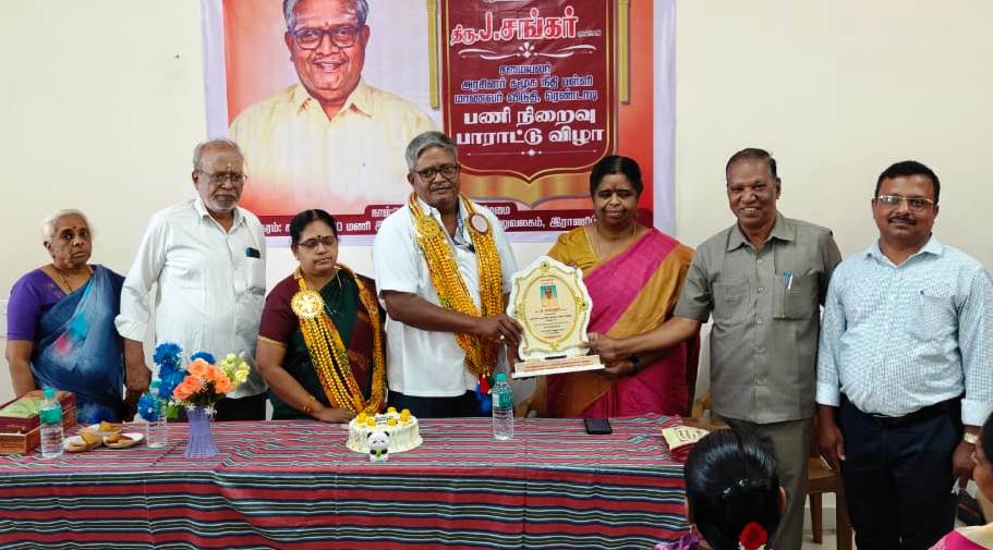 ஓய்வு பெறும் சமூக நீதி விடுதி சமையலர் ஜெ.சங்கருக்கு ராணிப்பேட்டை மாவட்ட பிற்படுத்தப்பட்டோர் மற்றும் சிறுபான்மை நலத்துறை அலுவலர் துணை ஆட்சியர் டி.மீனா பாராட்டு!வேலூர், மார்ச் 28-தமிழ்நாடு அரசின் மாவட்ட பிற்படுத்தப்பட்டோர் மற்றும் சிறுபான்மை துறையின் கீழ் இயங்கும் சமூக நீதி விடுதியின் சமையலர் ஜெ.சங்கர் 31.03.2026ல் பணி நிறைவு பெறுவதை முன்னிட்டு 27.3.2026 அன்று ராணிப்பேட்டை மாவட்ட ஆட்சியர் அலுவலக வளாகத்தில் உள்ள பிற்படுத்தப்பட்டோர் மற்றும் சிறுபான்மை நலத்துறை அலுவலகத்தில் நடைபெற்ற பாராட்டு நிகழ்வில் மாவட்ட நல அலுவலர் துணை ஆட்சியர் டி.மீனா பாராட்டு கேடயம் வழங்கி பாராட்டினார்.மாவட்ட ஆட்சியரகத்தில் உள்ள பிற்படுத்தப்பட்டோர் நலத்துறை அலுவலகத்தில் நடைபெற்ற நிகழ்விற்கு துணை ஆட்சியர் டி.மீனா தலைமை தாங்கி, பணி நிறைவு பெறும் ஜெ.சங்கர் ஆற்றிய பணிகளை பாராட்டி கேடயம் வழங்கி பேசினார்.ஜாக்டோ ஜியோ பேரமைப்பின் மாநில உயர்மட்டக்குழு உறுப்பினரும், தமிழ்நாடு மேல்நிலைப்பள்ளி தொழிற்கல்வி ஆசிரியர் கழகத்தின் தலைவருமான முனைவர். செ.நா.ஜனார்த்தனன் சால்வை அணிவித்து பாராட்டினார்.சமையலர் சங்க தலைவர் ஜி.வெங்கடேசன், பொருளாளர் பரிமளா மற்றும் உடன் பணிபுரிந்த சமையலர்கள் மற்றும் காவலர்கள் பாராட்டி பேசினர். முன்னதாக காப்பாளர் எம்.எம்.ஞானசேகரன் நிகழ்வினை ஒருங்கிணைத்தார். காப்பாளர்கள் எஸ்.அன்பரசு, டி.ஹரி, எஸ்.இ.ஏழுமலை, காளினிகள் ஜி.மஞ்சுளா, வி.டில்லிபாய், அனிதா, ஓய்வுபெற்ற வேளாண் துறை கண்காணிப்பாளர் ஜெ.சந்திரன், கூட்டுறவுத்துறை ஓய்வுபெற்ற செயலாளர் ஜெ.திருநாவுக்கரசு, ஜெ.பாபு, ஆட்சியர் அலுவலக இந்தியன் வங்கி நகை மதிப்பீட்டாளர் ஜெ.ஆறுமுகம், காளிகாம்பாள் அறக்கட்டளை தலைவர் பாலகுமார், சி.விஸ்வநாதன், சி.சதீஸ், வஞ்சூர் சீனிவாசன் உள்ளிட்ட பலர் சால்வை அணிவித்து பாராட்டி பேசினர்.பணிநிறைவு பெறும் ஜெ.சங்கர் ஏற்புரை வழங்கினார். முடிவில் எஸ்.தேன்மொழி. எஸ்.மகாலட்சுமி, எஸ்.பாலாஜி, எஸ்.ச சி குமார் ஆகியோர் நன்றி கூறினர்.
