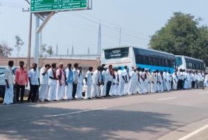 எம்.கே.கார்த்திகேயன் ஆகியோரது ஏற்பாட்டில் நான்கு பஸ்களில் அழைத்துச் சென்றனர்.