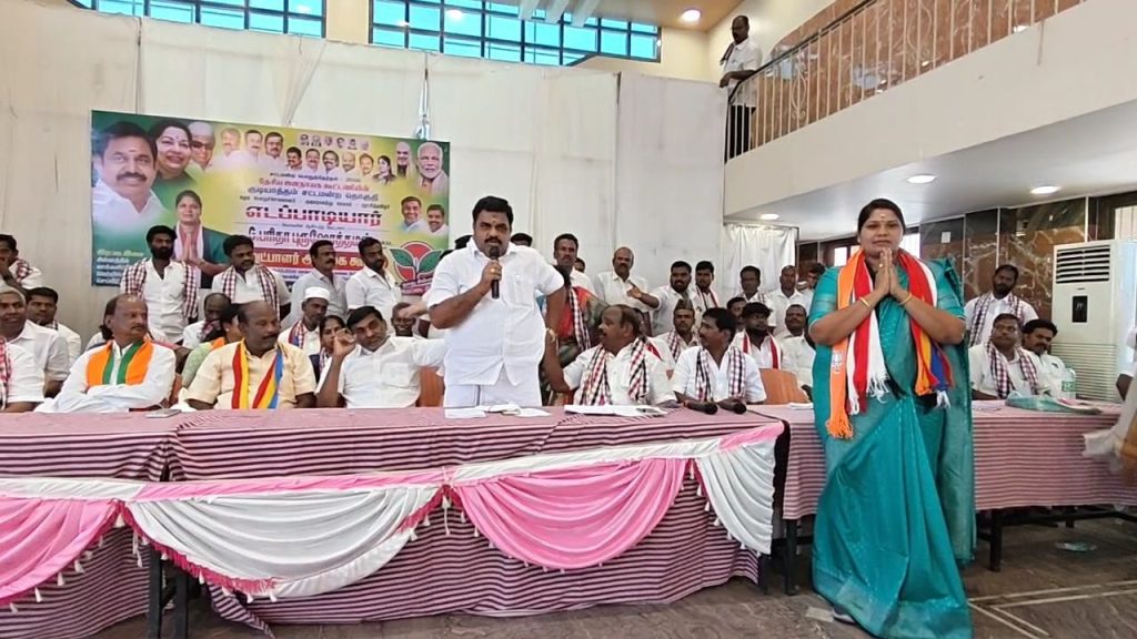 வேலூர் மாவட்டம், குடியாத்தம் தனி தொகுதி அதிமுக வேட்பாளர் பரிதா புருஷோத்தமனை அறிமுகம் செய்து வைத்து குடியாத்தத்தில் நடந்த அறிமுக கூட்டத்தில் முன்னாள் அமைச்சர் கே. சி. வீரமணி பேசினார். இந்த கூட்டத்தில் வேட்பாளருடன் கூட்டணி கட்சி நிர்வாகிகள் திரளாக கலந்து கொண்டு சிறப்பித்தனர்.
