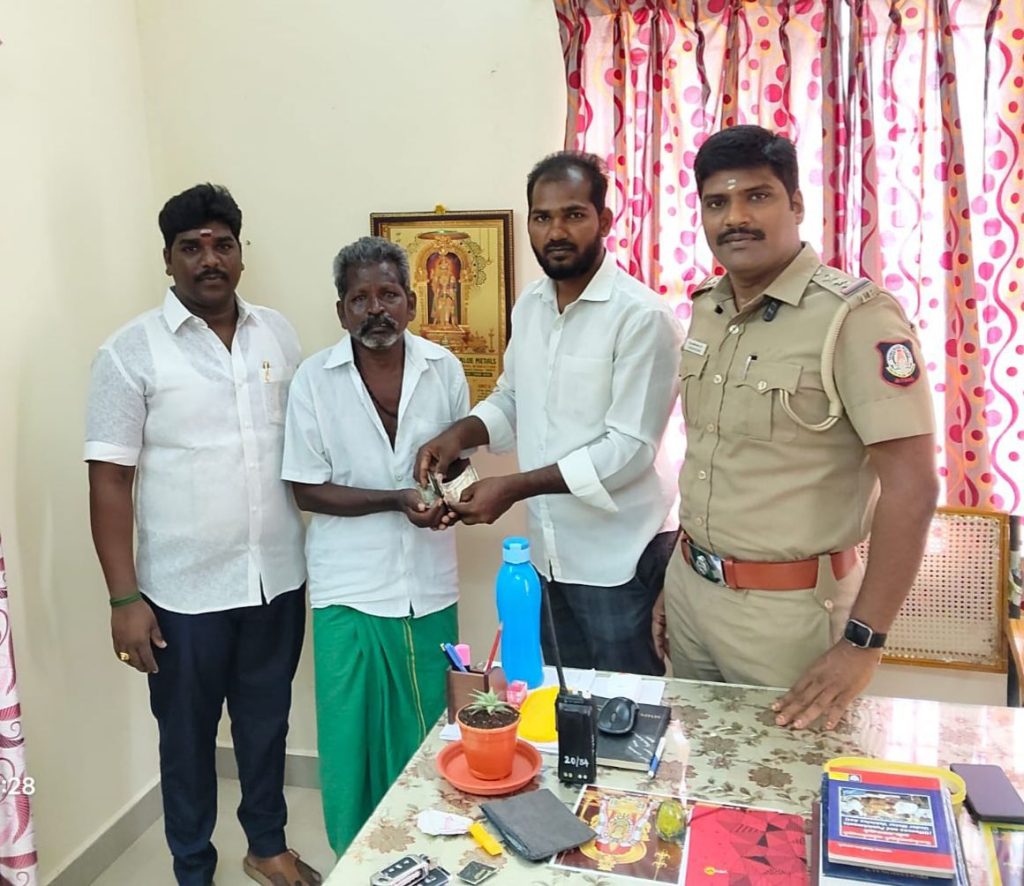 தவறவிட்ட பணத்தை உரியவரிடம் ஒப்படைத்த த.வெ.க., நிர்வாகியின் நேர்மையை இன்ஸ்பெக்டர் மணிகண்டன், மாவட்ட செயலாளர் உதயகுமார் பாராட்டு!