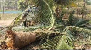 தென்னை மரங்களை வேரோடு பிடுங்கி எறிந்துள்ளன.