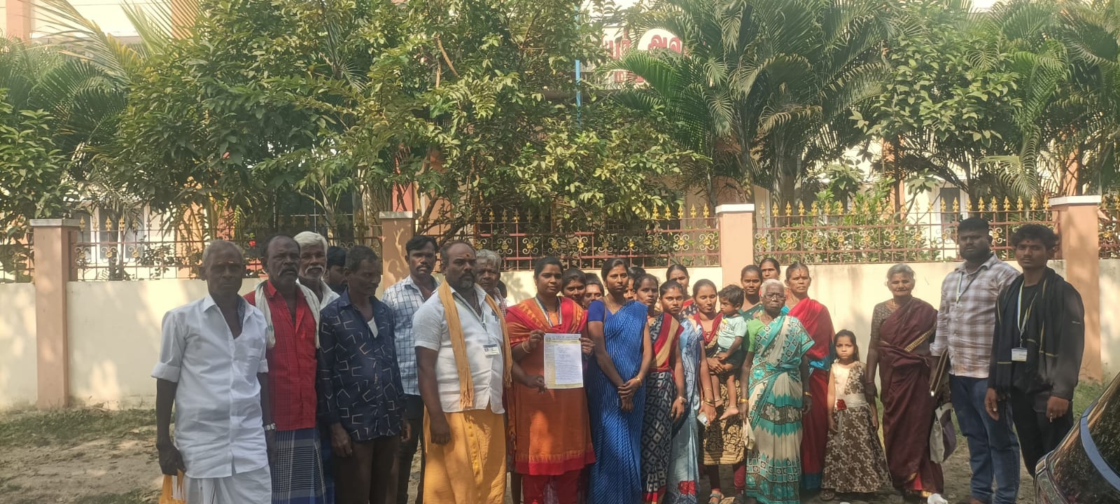 வேலூர் மாவட்டம், பரதராமி அடுத்த கொத்தூர் கிராமம் விழுதோன் பாளையம் ஊர் பொதுமக்கள் 50 ஆண்டுகளுக்கு மேலாக 35 குடும்பங்கள் வாழ்ந்து வருகின்றனர். இவர்களுக்கு வீட்டுமனை பட்டா வழங்க கோரி பலமுறை வேலூர் மாவட்ட ஆட்சியரிடம் மனு அளித்னர். இதுவரையும் அவர்களுக்கு பட்டா வழங்கவில்லை. இவர்கள் அனைவரும் கூலி வேலை செய்து வருகின்றனர். இவர்கள் வீட்டுவரி, கூரை வரி, தரை வரி, இபி பில் கட்டி வாழ்ந்து வருகின்றனர். மேலும் இது குறித்து ஊர் பொதுமக்கள் அனைவரும் சேர்ந்து சட்டம் உரிமை நீதி பாதுகாப்பு சங்கத்தில் முறையிட்டனர். சங்கத்தின் வேலூர் மாவட்ட செயலாளர் ச. கௌரி தலைமையில் அந்த ஊர் பொதுமக்கள் அனைவரையும் அழைத்துக் கொண்டு வேலூரில் கடந்த திங்கட்கிழமை காயிதே மில்லத் கூட்டரங்கில் மனு அளித்தார். மனுவைப் பெற்றுக் கொண்ட மாவட்ட ஆட்சியர் சம்பந்தப்பட்ட அதிகாரிகளிடம் விசாரித்து நடவடிக்கை எடுப்பதாக கூறினார் என்பது குறிப்பிடத்தக்கது. மேலும் 31.12.2025 அன்று குடியாத்தம் வருவாய் கோட்டாட்சியர் சுபலெட்சுமியிடம் கொத்தூர் விழுதோன்பாளையம் ஊர் பொதுமக்கள் அனைவரும் சேர்ந்து மனு அளித்தனர் .மனுவைப் பெற்றுக் கொண்ட வருவாய் கோட்டாட்சியர் நேரில் சென்று ஆய்வு செய்து பிறகு தகவலை கூறுவதாக உறுதி கூறியுள்ளார்.