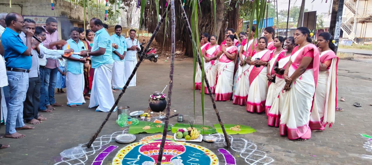 அரியலூர் மாவட்டம் செந்துறை வருவாய் வட்டாட்சியர் அலுவலகத்தில் பொங்கல் திருநாளை முன்னிட்டு வருவாய் வட்டாட்சியர் வேலுமணி தலைமையில் செந்துறை கிராம நிலை அலுவலர் மற்றும் வட்டத்திற்கு உட்பட்ட அனைத்து கிராம நிலை அலுவலர்கள், வருவாய் ஆய்வாளர்கள் முன்னிலையில் செங்கரும்பு வைத்து பானையில் சர்க்கரை பொங்கல், வெண்பொங்கல் வைத்து படையல் இட்டு பொங்கலோ பொங்கல் என அரசு அலுவலர்கள் பொங்கல் விழா சிறப்பாக கொண்டாடினார்கள்.