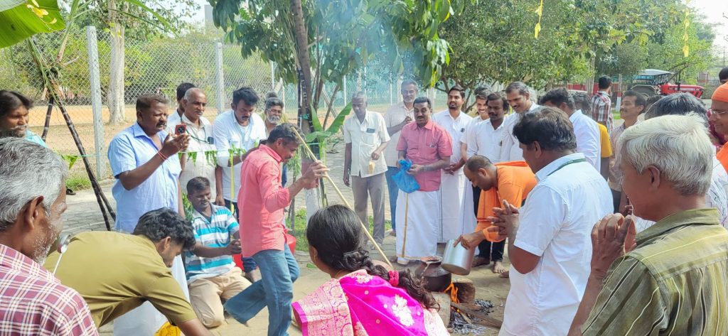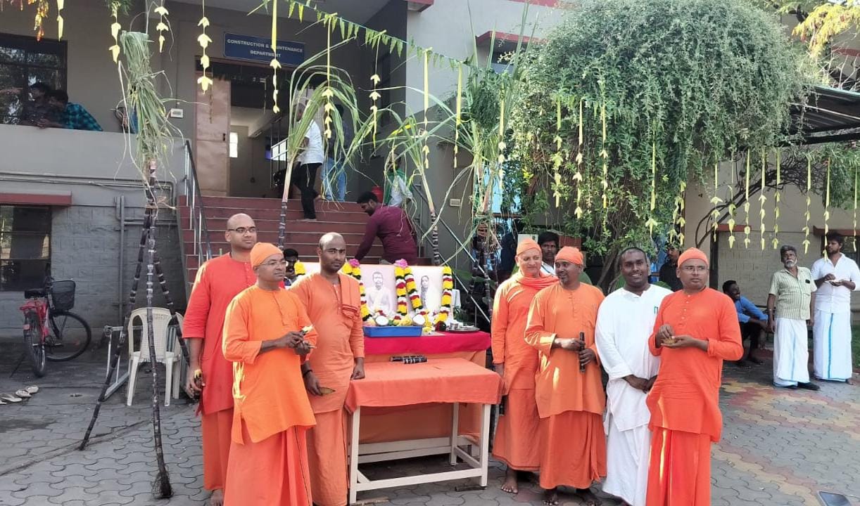 ராமகிருஷ்ண மிஷன் வித்யாலய செயலர் சுவாமி கரிஷ்டானந்தர் தலைமையேற்று பொங்கல் விழாவை துவங்கி வைத்தார்.