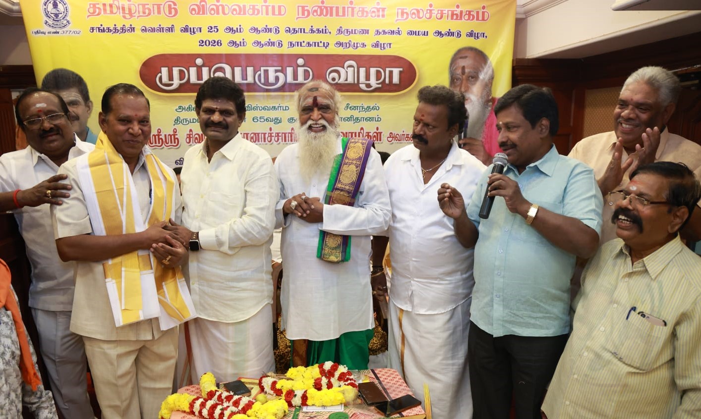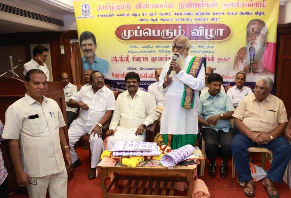 தமிழ்நாடு விஸ்வகர்ம நண்பர்கள் நலச்சங்கத்தின் 25ஆம் ஆண்டு தொடக்க வெள்ளி விழா, மாதாந்திர நாட்காட்டி வெளியீட்டு விழா, திருமண தகவல் மையத்தின் ஆண்டு விழா என முப்பெரும் விழா 28.12.2025 ஞாயிற்று கிழமை காலை 10 மணியளவில் வேலூர் ஆவனா இன் கூட்ட அரங்கில் நடைபெற்றது.