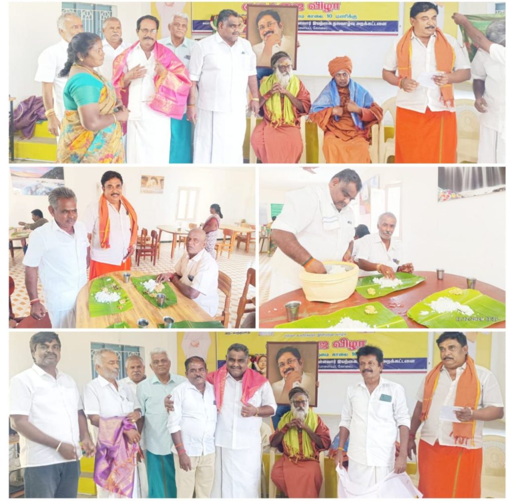அம்மா மக்கள் முன்னேற்ற கழக நிறுவனர் மக்கள் செல்வர் டிடிவி தினகரன் அவர்களின் பிறந்தநாளை முன்னிட்டு கோவை கிழக்கு மாவட்ட செயலாளர் எஸ் ஆர் ஏ செந்தில் அவர்களின் ஏற்பாட்டில் அப்பநாயக்கன்பட்டி ஒன்றிய செயலாளர் ரவிக்குமார் தலைமையில் சூலூர் லட்சுமி நாயக்கன் பாளையம் சுவாமி சச்சிதானந்த நினைவு முதியோர் காப்பகத்தில் அன்னதானமும் இனிப்பும் வழங்கப்பட்டது இதில் கிணத்துக்கடவு பொது குழு உறுப்பினர் ஆர் பாக்கியராஜ் முன்னாள் சுந்தராபுரம் பகுதி செயலாளர் ஜெட்லி பிரகாஷ் மற்றும் மாவட்ட கழக அவை தலைவர் பெருமாள் சாமி சேது ராமசாமி வெங்கடாசலம் சக்திவேல் மூர்த்தி ரகுநாதன் ஒன்றிய துணைச் செயலாளர் ரவிச்சந்திரன் ஒன்றிய பொருளாளர் தேவராஜ் மற்றும் ஊராட்சி செயலாளர்கள் குயிலி என்கிற வேலுச்சாமி மகளிர் அணி லட்சுமி நெசவாளர் அணி மூர்த்தி உட்பட அம்மா மக்கள் முன்னேற்ற கழக நிர்வாகிகள் செயல்வீரர்கள் கலந்து கொண்டு சிறப்பித்தார்கள்