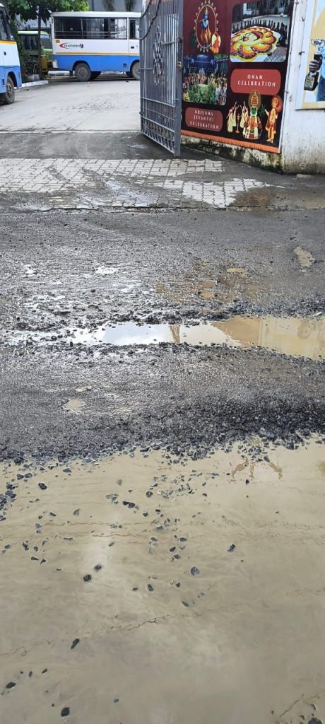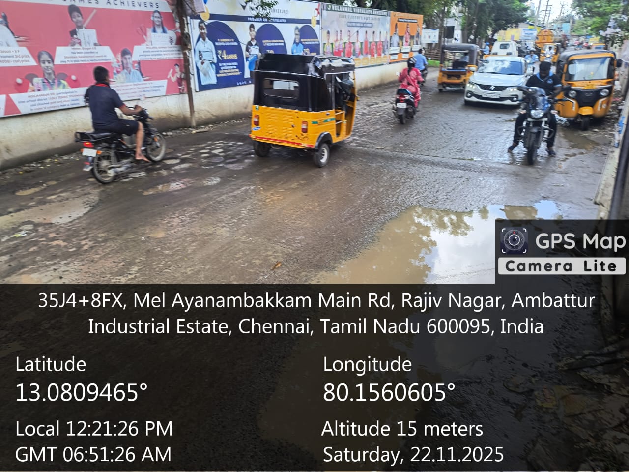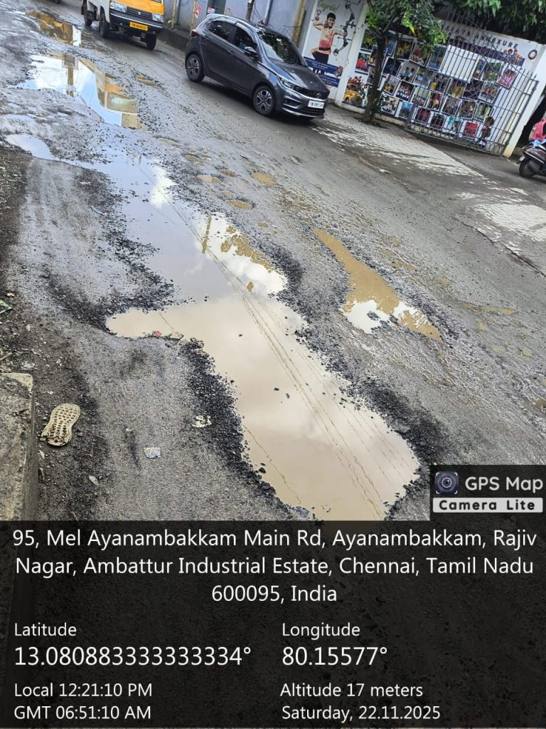 சுமார் 6000 மாணவ- மாணவிகள் வந்து போகும் இந்த சாலையின் நிலை மிகவும் மோசமாக உள்ளது. இதனால் மழை நேரங்களில் சீருடையில் செல்லும் மாணவ மாணவிகள் மிகுந்த சிரமத்துடன் சாலையைக் கடக்கின்றனர். தவிர அவ்வழியே செல்லும் அனைவரும் பெரும் அவதிக்குள்ளாகின்றனர். சம்பந்தப்பட்ட அதிகாரிகள் உடன் நடவடிக்கை எடுப்பார்களா?